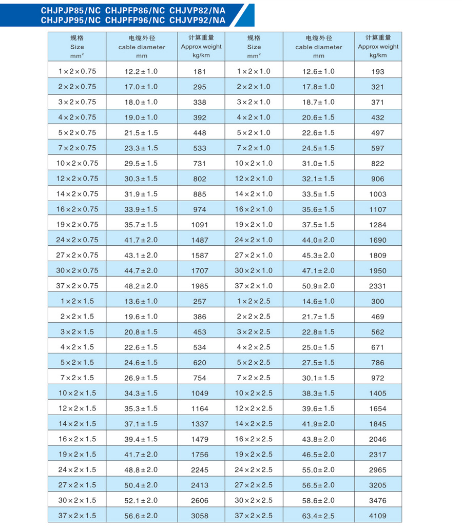 150/250V CHJPJP85/NC CHJPFP86/NC CHJVP82/NA CHJPJP95/NC CHJPFP96/NC CHJVP92/NA